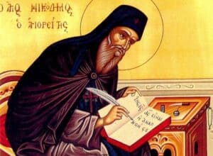 «Διδάσκαλε, τί κάνεις; Ἡσυχάζεις;», ρώτησαν στίς 14 Ἰουλίου τοῦ 1809 τόν ἅγιο Νικόδημο ἀπό τή Νάξο οἱ ἀγαπημένοι του ἁγιορεῖτες ἀδελφοί. Δακρύβρεχτοι τόν περιστοίχιζαν, ἀντικρίζοντάς τον νά ἀργοσβήνει. «Τόν Χριστόν ἔβαλα μέσα μου καί πῶς νά μήν ἡσυχάσω;», τούς ἀπάντησε ὁ χριστοφόρος ὅσιος.