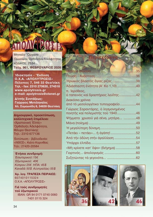 Τό τεῦχος τοῦ μήνα