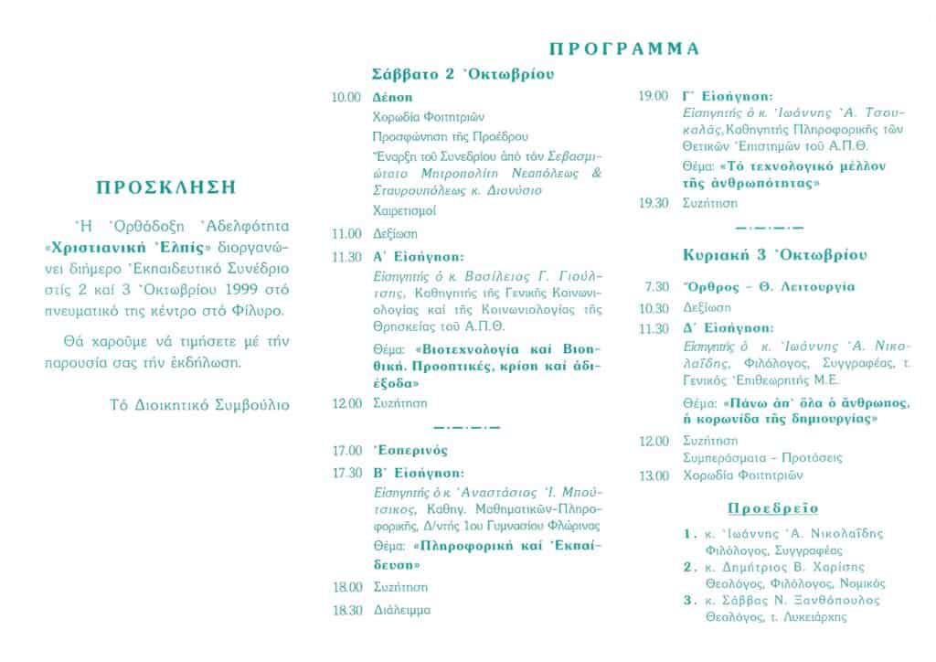 Ε΄ ΕΚΠΑΙΔΕΥΤΙΚΟ ΣΥΝΕΔΡΙΟ: «Τεχνολογία καί πνευματική καλλιέργεια»