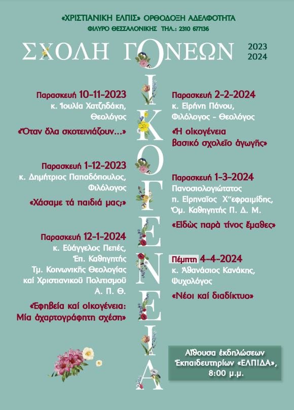 Θέμα: “Ἡ οἰκογένεια βασικό σχολεῖο ἀγωγῆς”