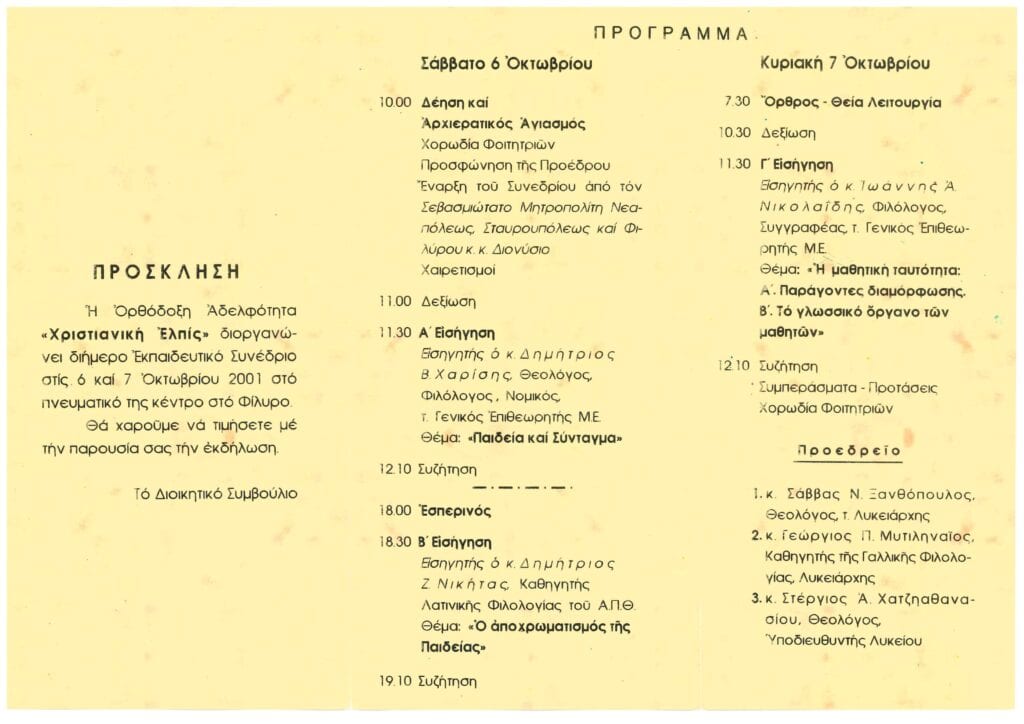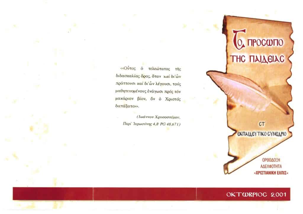 Αρχική » ΧΡΙΣΤΙΑΝΙΚΗ ΕΛΠΙΣ » Δραστηριότητες » ΣΤ΄ ΕΚΠΑΙΔΕΥΤΙΚΟ ΣΥΝΕΔΡΙΟ: «Τό πρόσωπο τῆς Παιδείας»